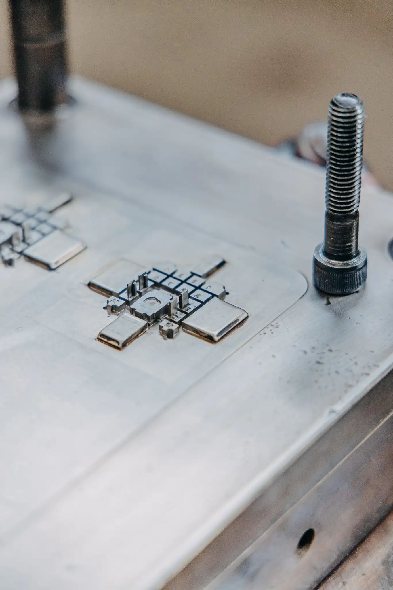 Le moule de bi-injection est une pièce d’ingénierie à part entière. Il intègre des canaux spécifiques pour guider les deux matières, parfois des systèmes rotatifs pour transférer la première injection vers une autre empreinte, et même des micro-textures destinées à renforcer l’adhérence.